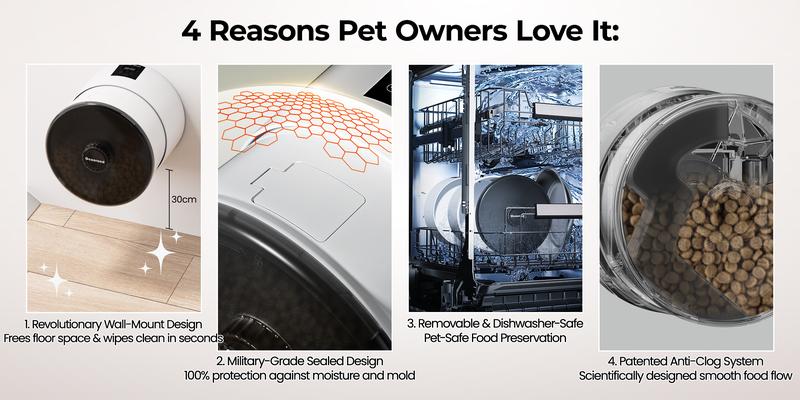 - 🚫 Canal de comida anti-atascos de 10 mm — Perfeccionado tras más de 10.000 pruebas para un flujo suave y sin bloqueos.