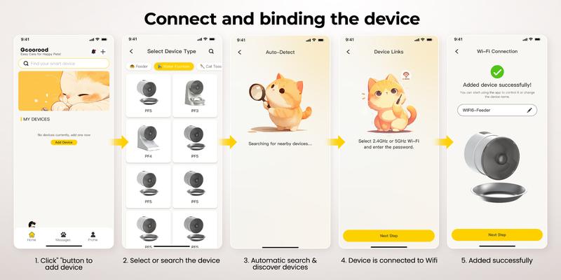 Programa y gestiona las comidas de tu mascota de forma remota mediante la app Geoorood, disponible para iOS y Android.